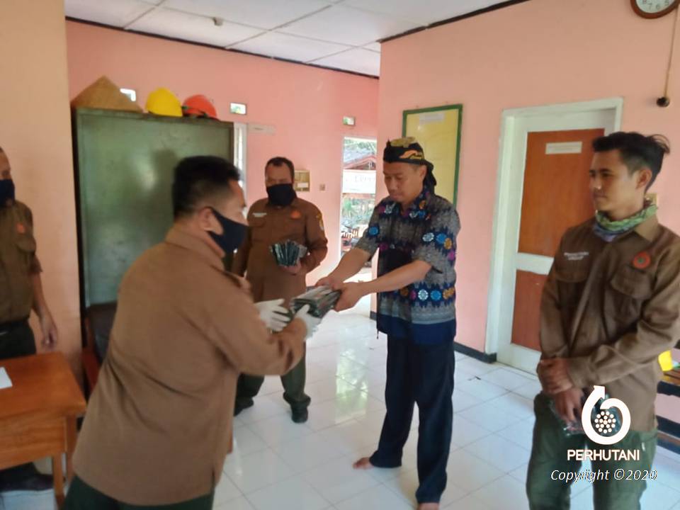 Cegah Penyebaran Covid-19, Perhutani Bagikan Masker Kepada Penyadap Getah Pinus di Sukabumi