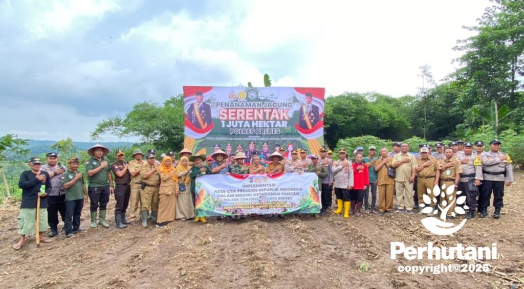Perhutani Dukung Tanam Jagung Serentak 1 Juta Hektar dengan Polres Brebes di Kecamatan Tonjong