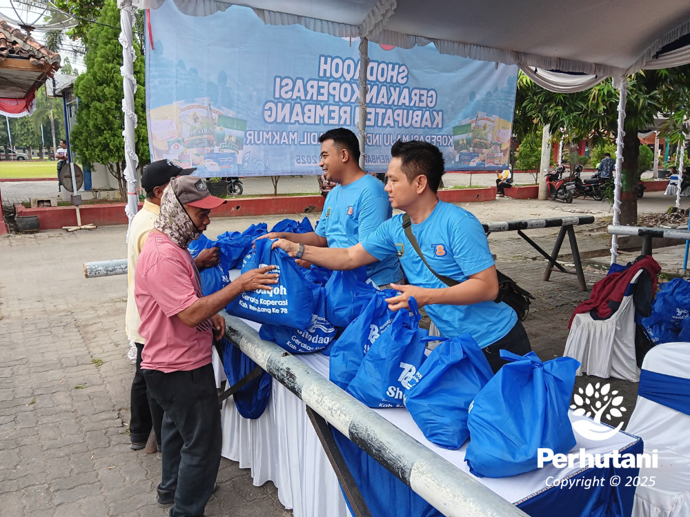 Primkokar Perhutani Mantingan bersama Gerakan Koperasi Kabupaten Rembang Bagikan 400 Paket Sembako Gratis