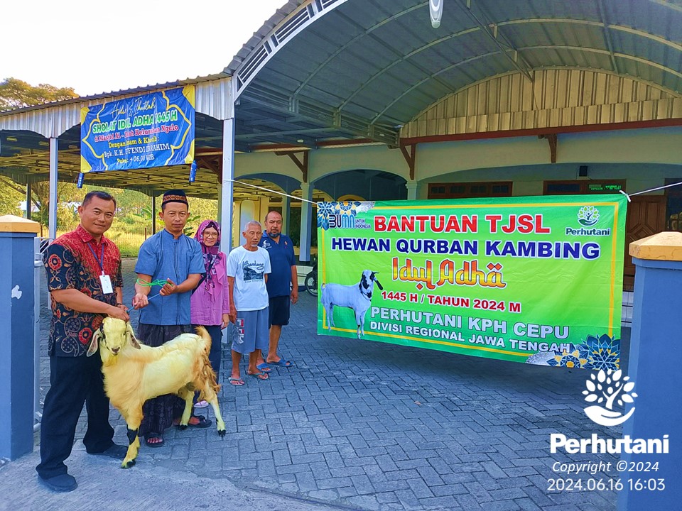 Jelang Idul Adha 1445 H, Perhutani Serahkan Satu Ekor Kambing Kurban kepada Masjid Al-Falah Ngelo Cepu