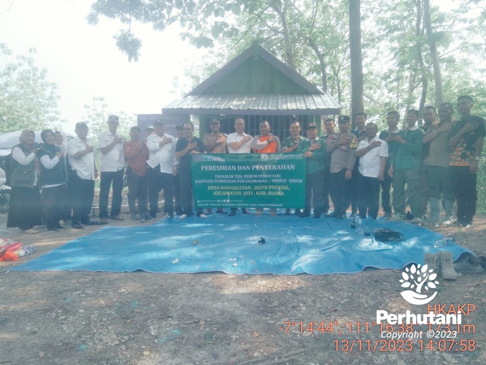 RANDUBLATUNG, PERHUTANI (14/11/2023) | Perhutani Kesatuan Pemangkuan Hutan (KPH) Randublatung menghadiri tasyakuran sekaligus peresmian Pos Singgah Trodjojo Lembaga Masyarakat Desa Hutan (LMDH) Wana Sumber Rejeki di petak 78 Resort Pemangkuan Hutan (RPH) Kemadoh Bagian Kesatuan Pemangkuan Hutan (BKPH) Pucung dalam rangka merealisasikan hasil bantuan Tanggung Jawab Sosial dan Lingkungan (TJSL) senilai Rp15.000.000, Senin (13/11).