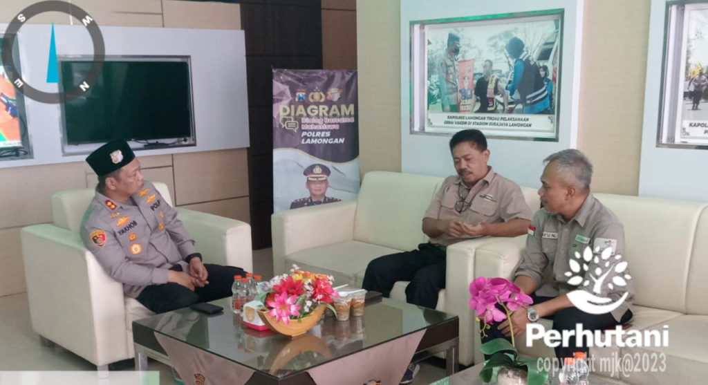 MOJOKERTO, PERHUTANI (12/05/2023) | Usai dilantik beberapa waktu lalu, Administratur Perhutani Kesatuan Pemangkuan Hutan (KPH) Mojokerto Andi Andrian Hidayat, melakukan kunjungan kerja dan silaturahmi, ke Markas Kepolisaian Resort (Mapolres) Lamongan dan diterima langsung orang nomor satu di Polres Lamongan yakni AKBP Yakhob Silvana Delareskha, di Ruang Kerjanya pada Jumat (12/05).