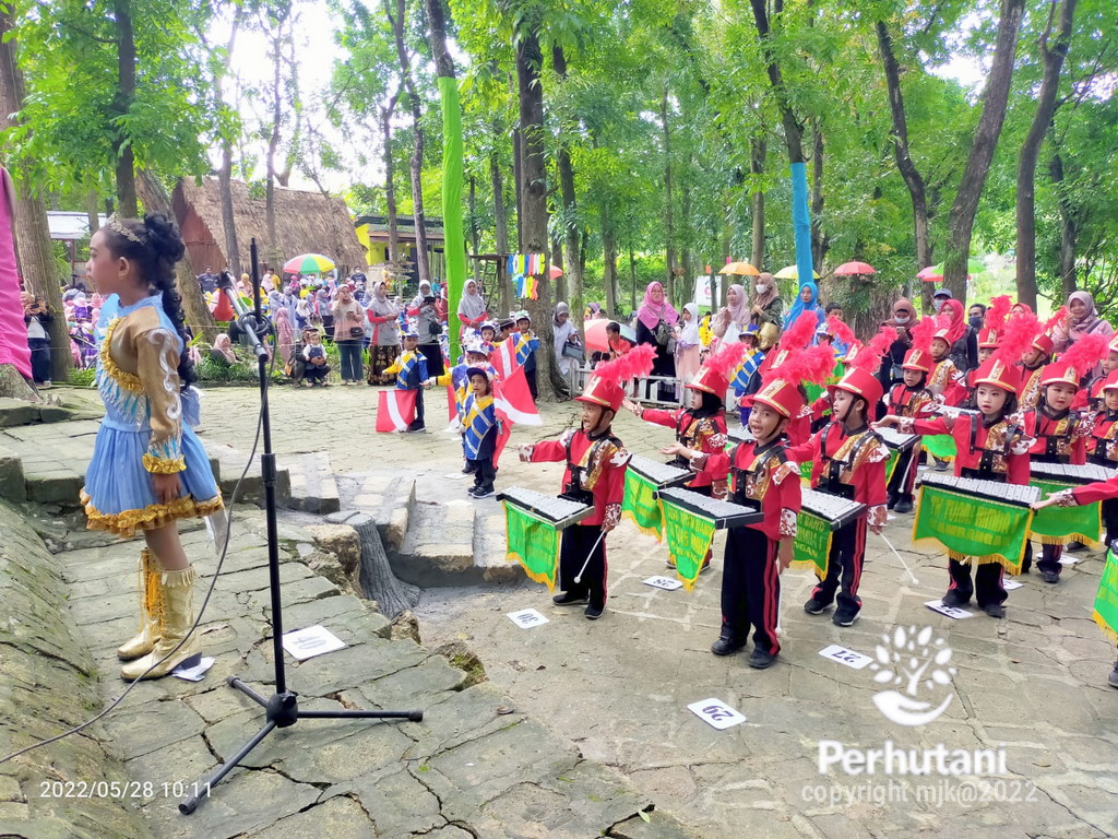 MOJOKERTO, PERHUTANI (28/05/2022) | Perhutani memfasilitasi Siswa TK Tunas Rimba Kambangan binaan Perhutani Kesatuan Pemangkuan Hutan (KPH) Mojokerto untuk mengikuti lomba drum band yang digelar di lokasi wana wisata rintisan KPH Mojokerto Gondang (G) Park di Lamongan, Sabtu (28/05).