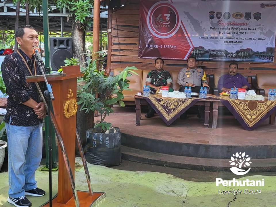 Dalam sambutannya Administratur Perhutani Ngawi Tulus Budyadi memberikan ucapan selamat ulang tahun kepada Satpam Kabupaten Ngawi.