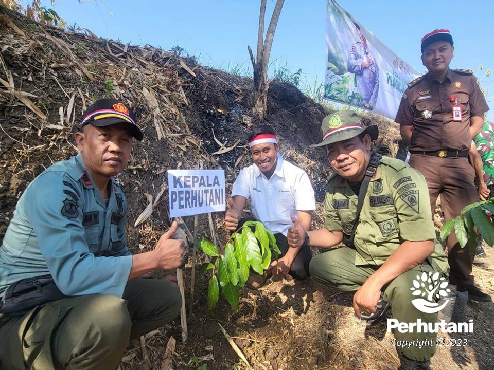 NGAWI, PERHUTANI (23/08/2023) | Perhutani Kesatuan Pemangkuan Hutan (KPH) Ngawi memberikan dukungan penuh pada kegiatan penanaman bersama yang dilaksanakan secara serentak oleh jajaran Polri se-Indonesia, bertempat di Kepolisian Sektor (Polsek) Pitu, Desa Kalangan, Kecamatan Pitu, Ngawi Rabu (23/08).