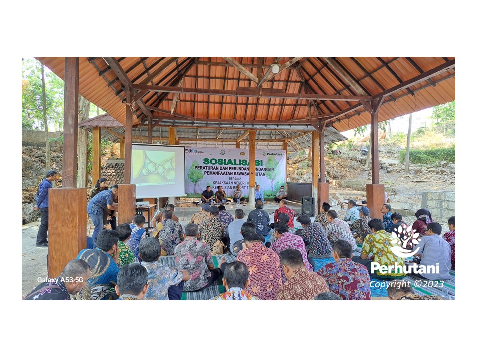 TUBAN, PERHUTANI (30/10/2023) | Dalam rangka meningkatkan wawasan di bidang hukum bagi petugas lapangan dan masyarakat, Perhutani Kesatuan Pemangkuan Hutan (KPH) Tuban bekerjasama dengan lembaga hukum Kejaksaan Negeri dan Polres Tuban menggelar sosialisasi Bidang Hukum terkait ijin pemanfaatan kawasan hutan, tindak kejahatan Ilegal logging dan tindak pidana korupsi yang dilaksanakan di Aula Wisata Sendang Asmoro, Desa Ngino, Kecamatan Semanding, Kabupaten Tuban pada Minggu (29/10).