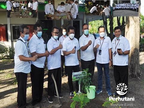 PARENGAN, PERHUTANI (23/12/2021) | Direktur Utama Perum Perhutani Wahyu Kuncoro didamping Kepala Perum Perhutani Divisi Regional JawaTimur Karuniawan Purwanto Sanjaya bersama rombangan melakukan kunjungan kerja di Kesatauan Pemangkuan Hutan (KPH) Parengan, Rabu (22/12).