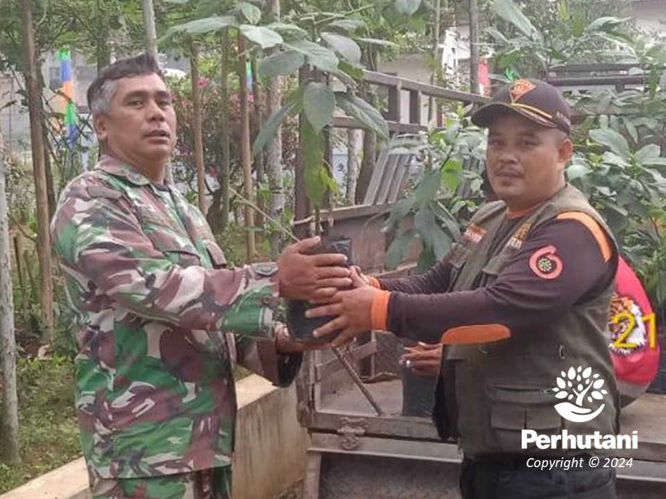 PEKALONGAN TIMUR, PERHUTANI (22/08/2024) | Perum Perhutani Kesatuan Pemangkuan Hutan (KPH) Pekalongan Timur melalui Kepala Bagian Kesatuan Pemangkuan Hutan (BKPH) Bawang menyerahkan bantuan berupa bibit buah-buahan kepada Komando Distrik Militer (Kodim) 0736/Batang di Desa Pacet Kecamatan Reban Kabupaten Batang, Rabu (21/08).